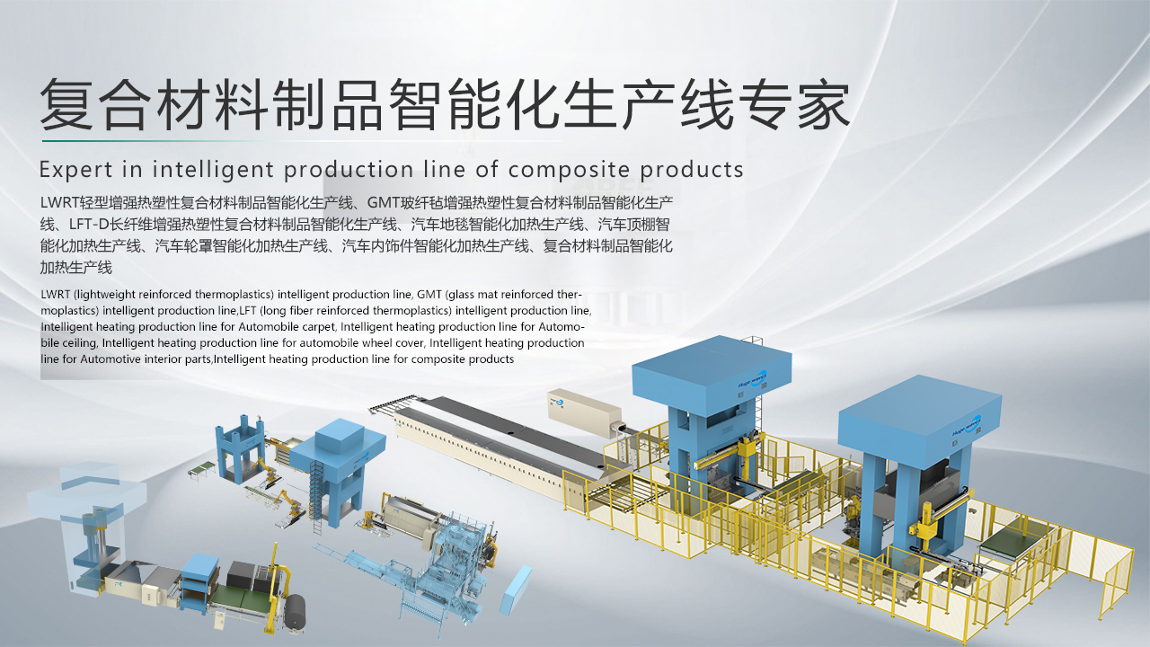 The following fields are covered: Far Infrared Oven, Heated Air Circulation Oven,Industrial oven,Curing furnace,Multilayer oven, Touch type heater,Multi-layer touch type heater,PET composite products intelligent production line,LWRT (lightweight reinforced thermoplastics) intelligent production line, GMT (glass mat reinforced thermoplastics) intelligent production line,LFT (long fiber reinforced thermoplastics) intelligent production line, Intelligent heating production line for Automobile carpet, Intelligent heating production line for Automobile ceiling, Intelligent heating production line for automobile wheel cover, Intelligent heating production line for Automotive interior parts,New energy vehicle battery cover and lower shell intelligent production line, SMC composite products intelligent production line,HP-RTM /HP-CRTM composite products intelligent production line,Intelligent heating production line for composite products, Ultrasonic plastic welding machine, Hot plate welding machine,Teflon strip composite machine, Steel strip composite machine, Felt sheet composite machine, Heating equipment supporting automation equipment, Such as truss loading manipulator and frame loading manipulator, Automatic up and down feeding machine, Spreading Machine, Automatic loading and unloading by robot, Gripper, Acupuncture group, Lorry, Air motor return device, Elevation structure etc.